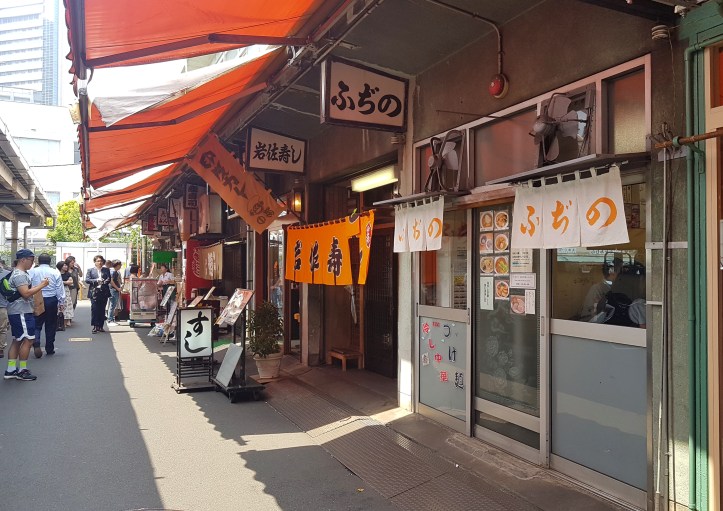 - Mercado de Peixes Tsukiji – quando li sobre Tóquio, um dos principais destaques era o mercado de peixe, famoso pelos leilões de pescado. Por isso não queria sair de lá sem conhecê-lo, mas não conseguimos ir no horário principal, que é de madrugada. Já estava tarde, mas arriscamos mesmo assim. Chegamos quando estava tudo fechando e só deu para ver a a parte do atacado, mas só tinham os caminhões e os trabalhadores, os produtos não estavam mais ali. Dei uma olhada nos restaurantes para comer sushi, mas além de não ter muito tempo, achei tudo muito caro. A indicação de restaurante que tinha, era na parte externa do mercado que já estava fechada. Depois descobri que eles estavam mudando o mercado para um novo endereço. Mais um motivo para voltar a Tóquio!