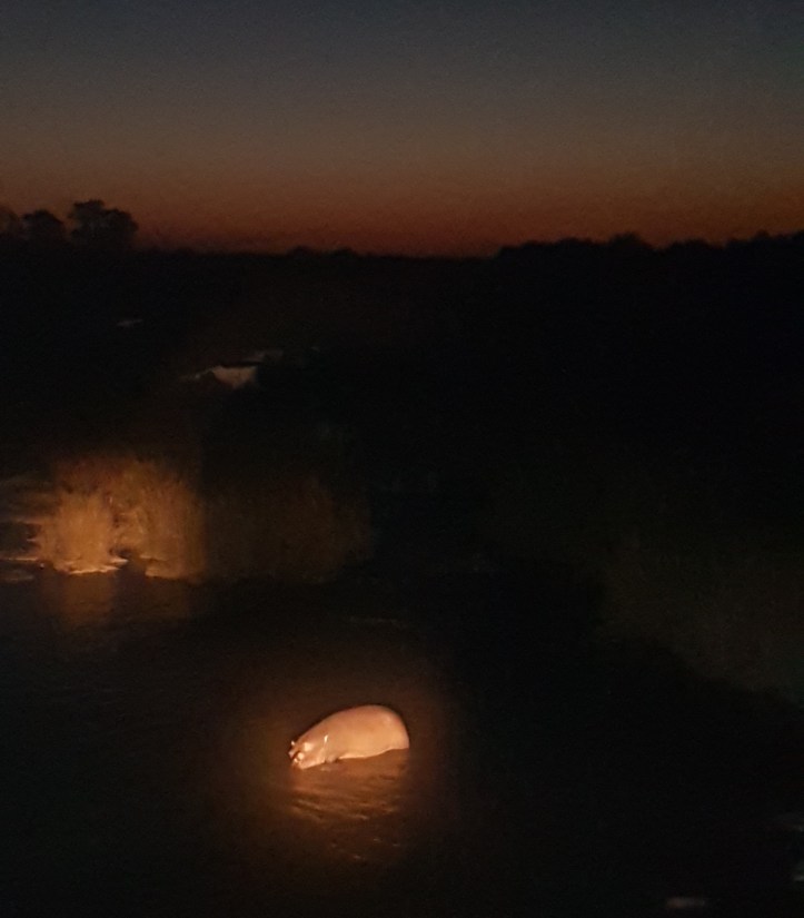 Jantamos admirando nossos vizinhos hipopótamos que saíram da água para se alimentar!