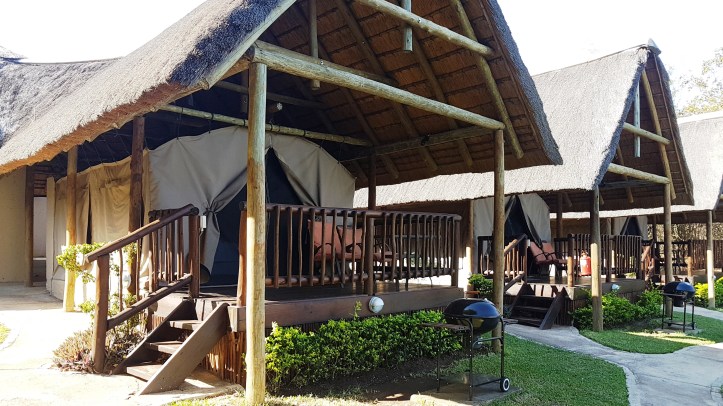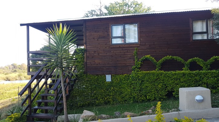 Após 6 horas de viagem, com direito a paradas nos postos da estrada (bem estruturados com banheiros bem limpos), chegamos ao nosso Lodge e ficamos encantadas com o lugar, às margens do rio Sabie, especialmente com a nossa linda cabana, de frente para o rio, com uma sala ampla, dois quartos e um banheiro maravilhoso.