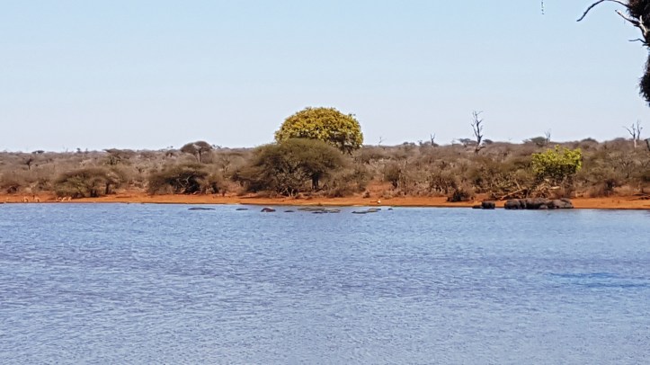Ainda deu tempo de curtir um pouco do fim de tarde no deck da piscina do Lodge, observando os hipopótamos que se banhavam no rio. Pena que o cardápio de almoço do restaurante se restringe a hamburguinhos, salada e frutas.