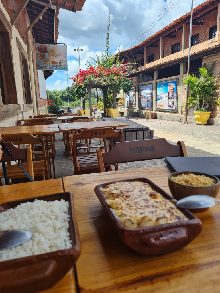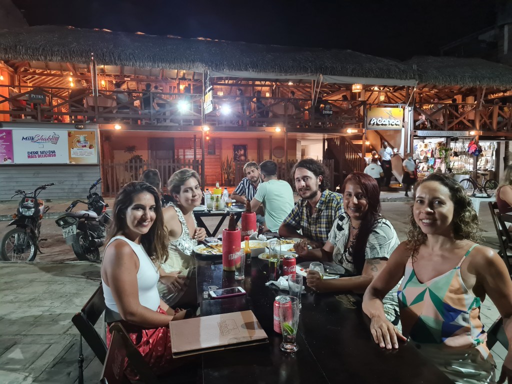 - Restaurante A Canoa – comemos uns petiscos e tomamos umas cervejinhas com os amigos que fizemos no passeio. Ficamos em uma mesinha do lado de fora, na orla, para curtir a música ao vivo. Foi legal, mas a comida não tinha nada de especial.