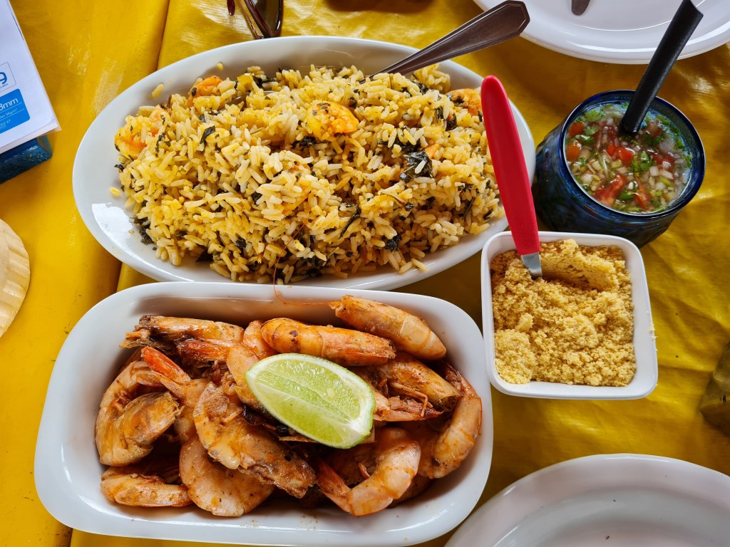 Para fechar com chave de ouro o passeio em Santo Amaro, a agência nos levou para almoçar no Restaurante Sol de Amaro, onde provamos o famoso arroz de cuxá (prato típico da região com arroz e vinagreira, planta típica do Maranhão) com deliciosos camarões.