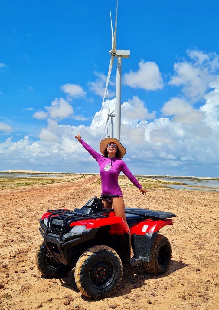 De lá, seguimos para Caburé, passando por um Parque Eólico, pilotando pela praia e terminamos no restaurante que fica entre a praia de Caburé e o Rio Preguiças. E foi por esse rio com paisagens belíssimas que retornei à Barreirinhas de lancha.