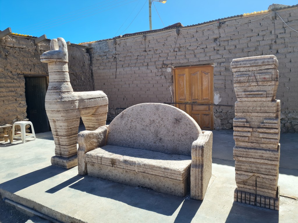 A parada seguinte foi em um povoado que fica no caminho do Salar e onde um senhor explica como se faz a extração do sal e a produção dos blocos de construção (feitos do mesmo mineral) e do sal de cozinha. É a hora de aproveitar para comprar souvenir nas barraquinhas!