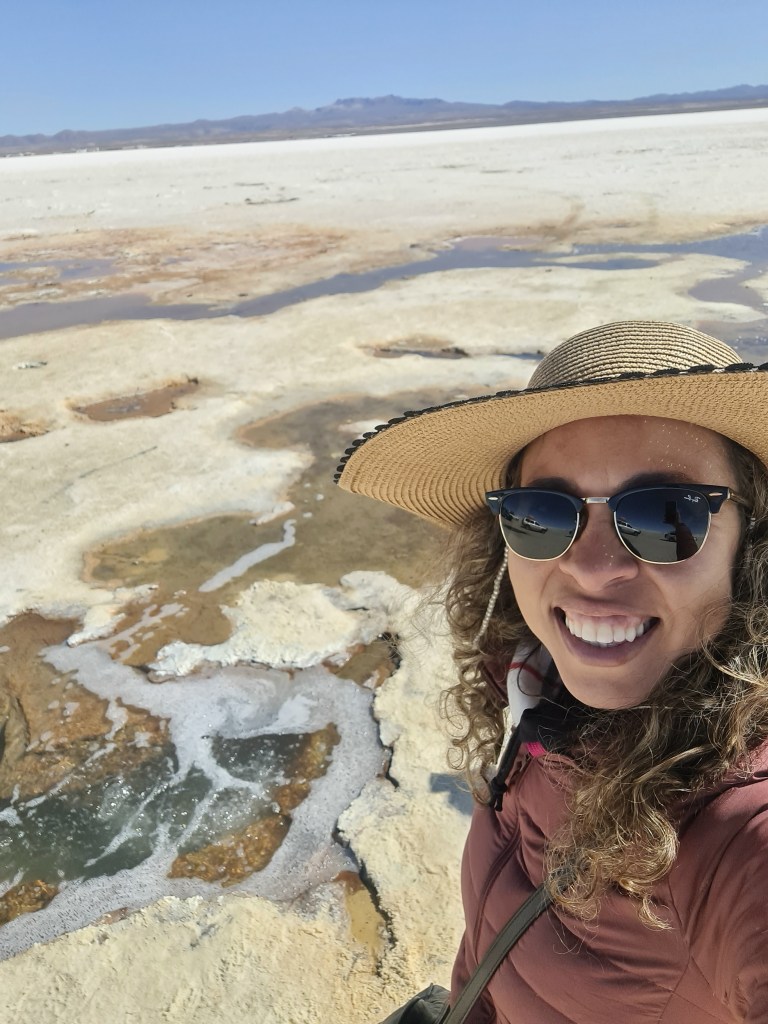 Em seguida, já entramos no deserto de sal. Fizemos uma parada rápida em um local com vários pontos de afloramento de água (não é potável). Nosso guia disse que era o “deserto respirando”!