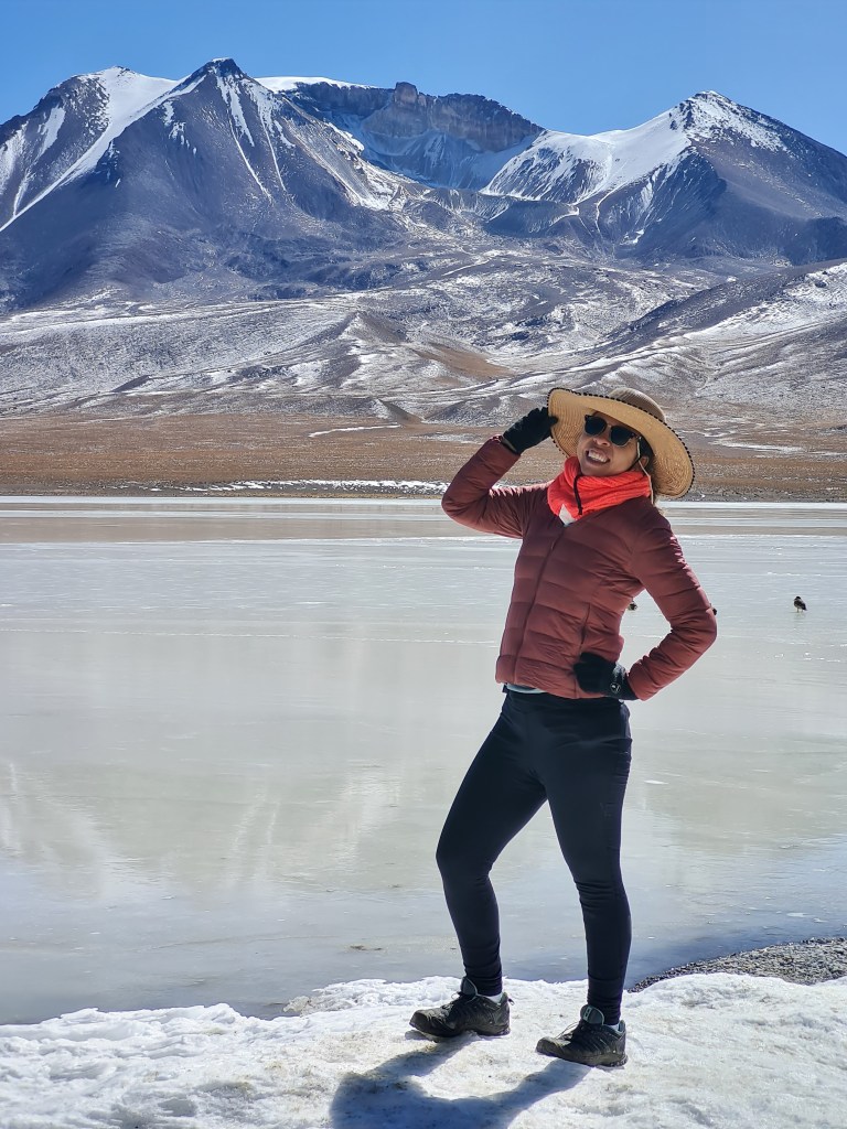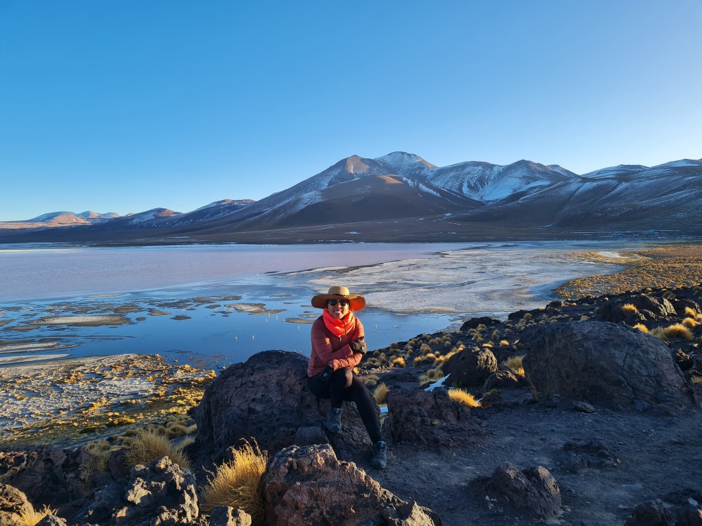 Continuamos deserto a dentro, subindo cada vez mais e, consequentemente, chegando a lugares cada vez mais frios. O branco do sal deu lugar ao branco da neve! A paisagem foi mudando e nos deparamos com cenários belíssimos! Várias lagoas com cores que variavam de acordo com o tipo de minério que estava misturado a suas águas.