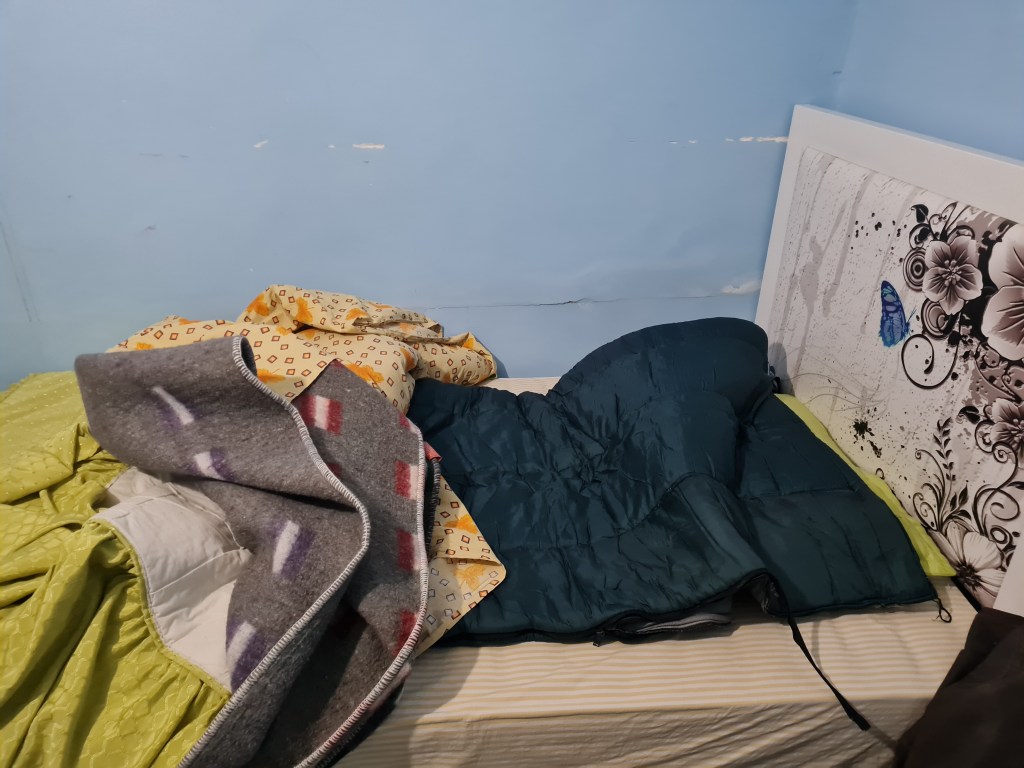 Para dormir quentinha, deitei vestida com 2 calças, 2 blusas de lã, 3 casacos, 1 meia, além disso, entrei em um saco de dormir e coloquei várias mantas por cima. O guia disse que na madrugada estava cerva de -15° C e não duvido, pois nunca estive em um lugar tão frio! A água que deixei na cabeceira da cama quase congelou e as que ficaram no carro congelaram.