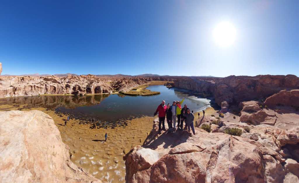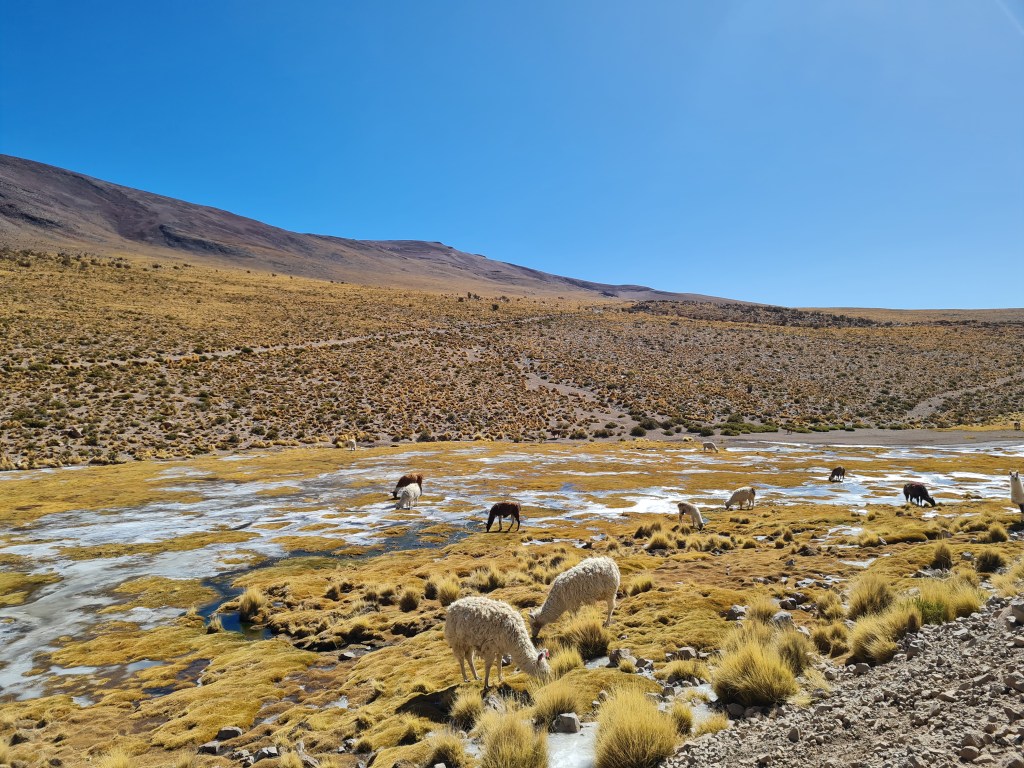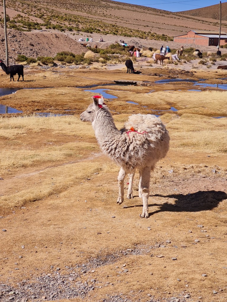 Já aquecidos, seguimos por mais uma hora e meia até a Laguna Capina, que já fica fora do parque (a Reserva que havíamos entrado no dia anterior). O mineral que predomina nessa lagoa é o bórax.