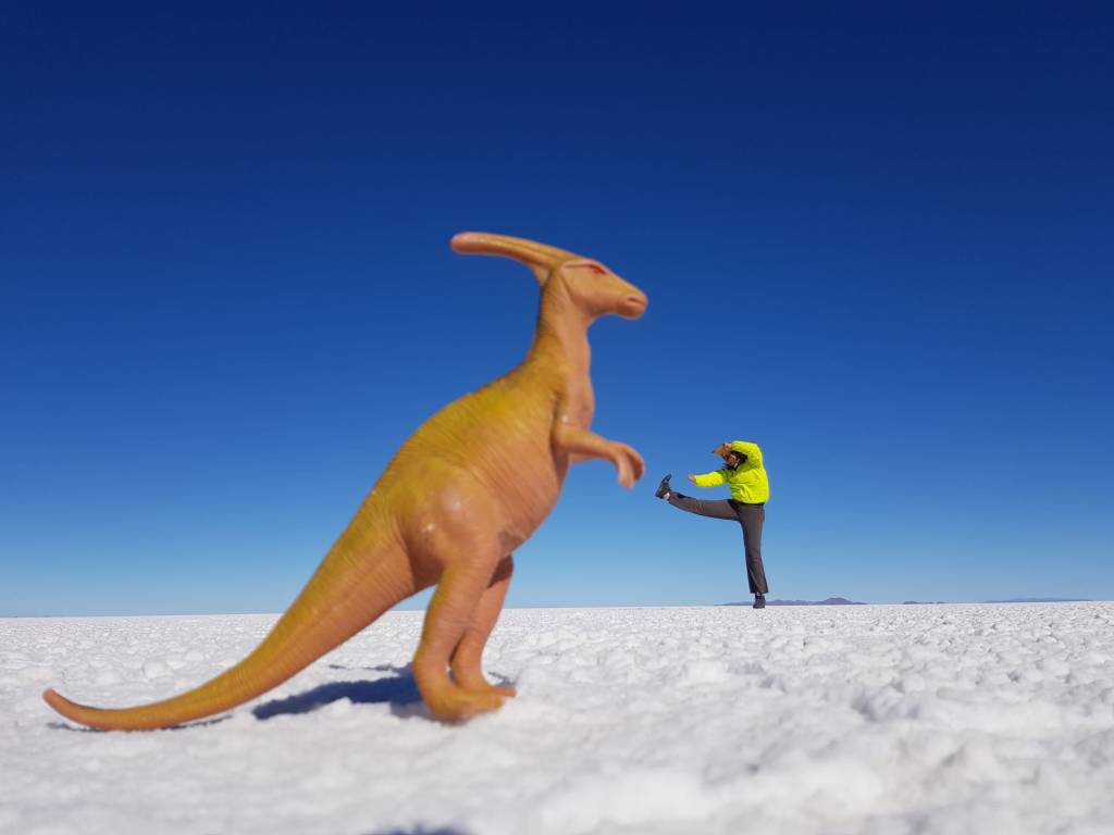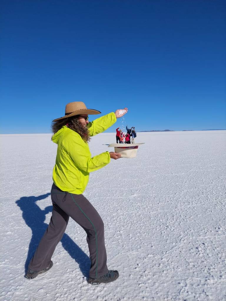 Continuamos salar adentro! O guia nos deixou em um local para fazermos umas fotos, enquanto montava a estrutura do almoço.