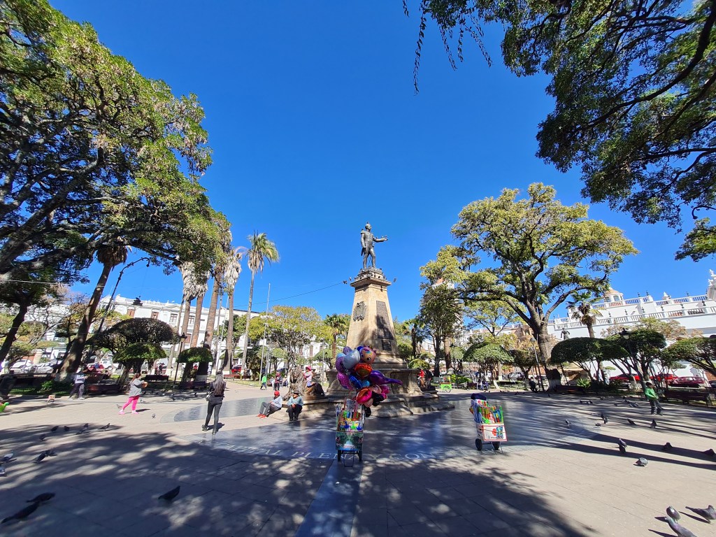 Como viram, não estava dando muito certo esse nosso roteiro improvisado, mas não desistimos! Seguimos caminhando para a Plaza 25 de Mayo para ver os museus sem saber que todos fecham aos sábados e abrem domingo (no mapa que nos deram dizia que abria sábado, fechando só na hora do almoço), inclusive o Museu Casa de la Libertad, que conta a historia independência do país. Ficamos tirando fotos na praça e nos prédios ao redor, que são lindos! Paramos para comer a tão desejada salteña na lanchonete do Museo do Tesoro.