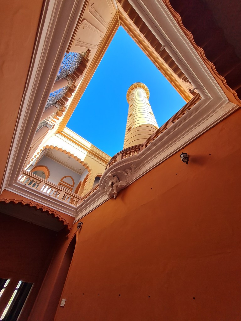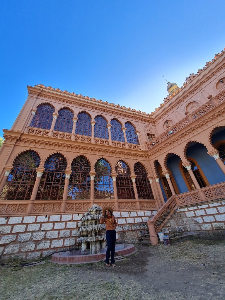 Seguimos caminhando para o Castelo La Glorieta, até nos darmos conta que era longe. Adivinha?! Sim, pegamos o ônibus número 4 que nos deixou na porta do Castelo, distante cerca de 7 km do Centro Histórico onde estávamos. Confesso que, pelo que mostrava no mapa e pelas fotos, esperava algo mais grandioso. A entrada para estrangeiro custava 20 Bo (R$15), mas, para tirar fotos, tinha que pagar mais 10 Bo (R$7,50) por grupo. O castelo tem duas torres, a do príncipe e a da princesa. Só é permitido subir na do príncipe, que tem 108 degraus e é bem estreita. Subimos para conferir. Depois nos juntamos ao tour guiado que conta um pouco de como era o palácio na época que era ocupado por Fracisco Aragoña Revilla e Clotilde Urioste Velasco, no final do século XVII, início doséculo XVIII. O casal fazia muitas obras sociais, tendo, inclusive, construído um orfanato. A construção é uma verdadeira mistura de estilos arquitetônicos. Está mal conservado, mas estão pintando, pois vão inaugurar uma nova atração, que é um tour virtual pelo palácio. Não tem muito o que fazer. Tiramos umas fotos e fomos embora.