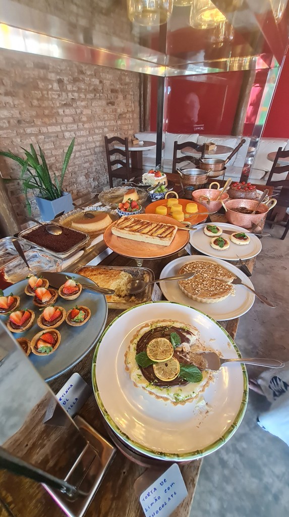 Apesar do tempo curto, deu para provar um pouco das delícias de Porto Seguro. As opções de comidas eram diversas. Comi um delicioso hamburguer (R$37) no San Diego Burger e me deliciei com um almoço bem variado no self service Rabanete, que tem uma área exclusiva para doces, vendido no peso também! Achei os preços dos restaurantes bem justos para ser uma região turística.