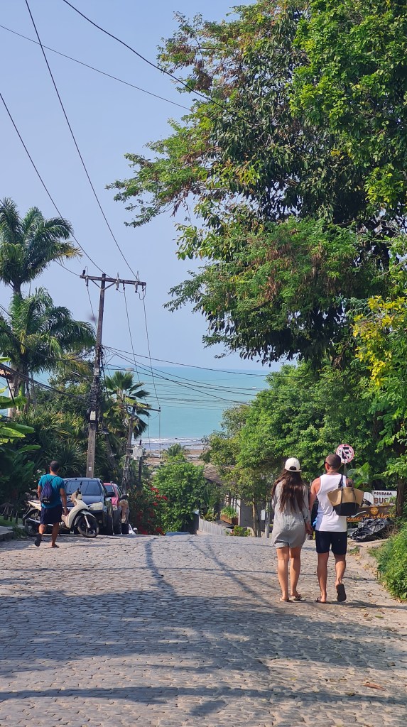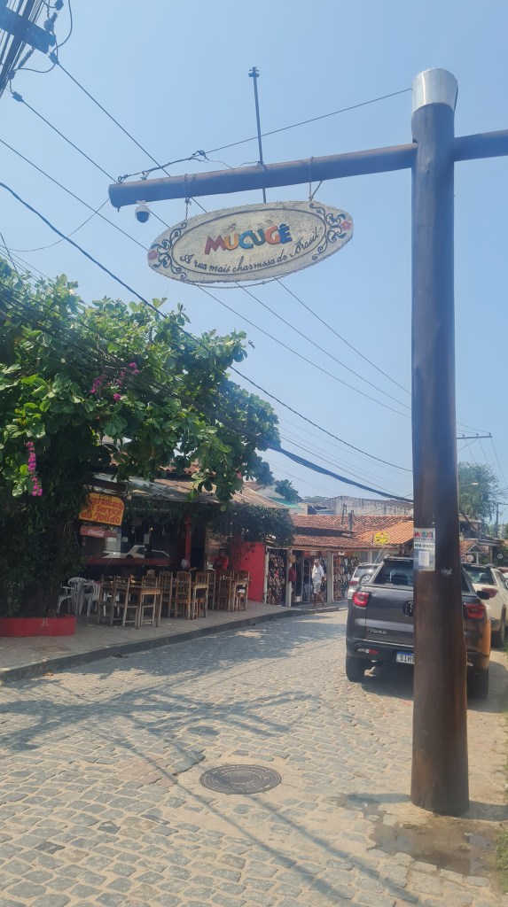 Desci no Centrinho, perto do início da Rua do Mucugê, que é uma graça. Achei bem parecida com a rua principal da Praia de Pipa – RN. Segui por ela até a Pousada Angatu, do mesmo dono da pousada onde me hospedei em Porto Seguro. Deixei a mochila lá e desci para a praia de Mucugê.
