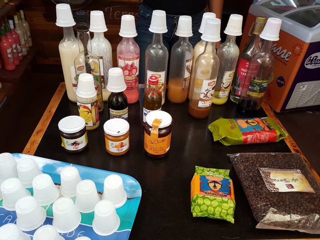 A parada seguinte foi em Palmeira, onde nos levaram para uma degustação de bebidas, principalmente a Grog, uma bebida alcoólica de Cabo Verde (a cachaça deles).