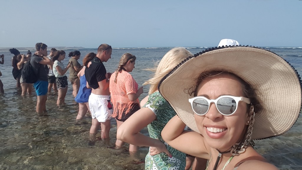 Alimentadas, seguimos para a Baia da Pedra do Lume para ver os tubarões que chegam bem pertinho da margem da praia.