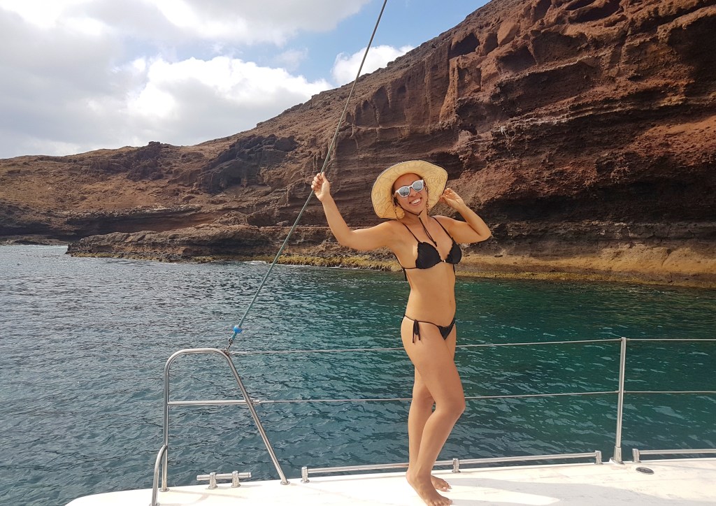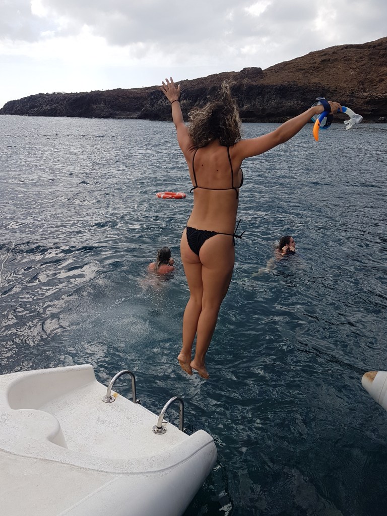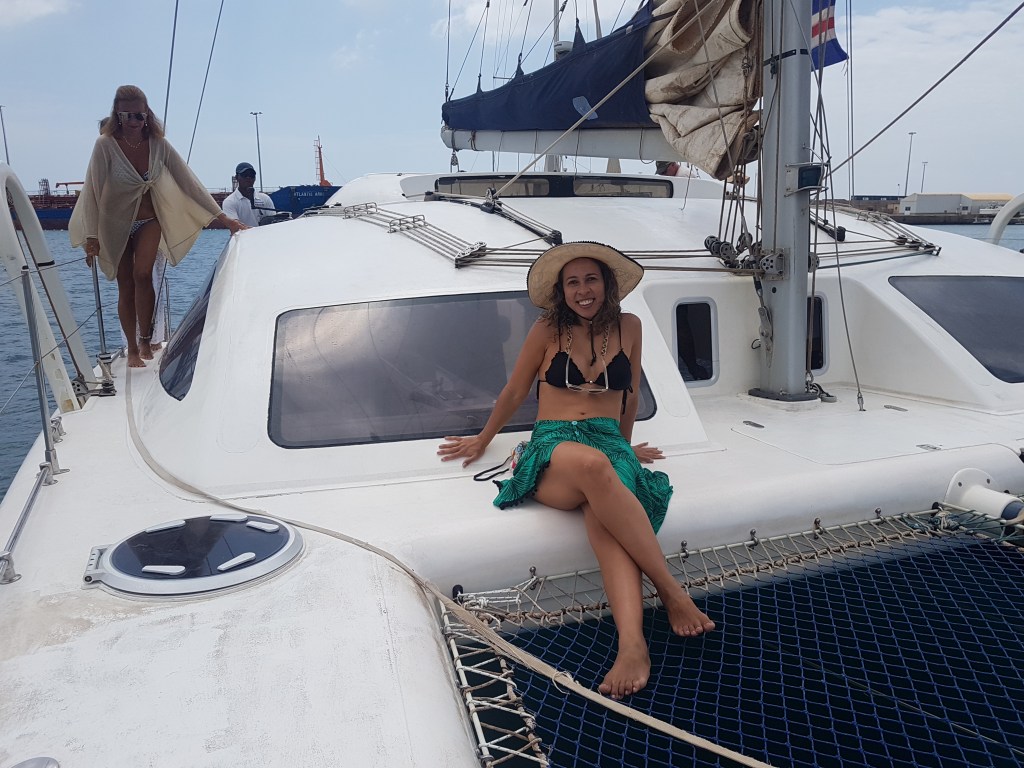 Outro passeio bem legal que fiz na ilha foi o de catamarã saindo de Palmeira com destino à Monte Leão. Contratei o passeio com a empresa No Limits Adventure, que me pegou no hotel e levou até o cais onde embarcamos no catamarã. Foi nesse passeio que conheci as goianas dente boníssimas! Passamos o dia velejando e o passeio incluía parada para mergulharmos com snorkell e pescar com linha e anzol, lanchinho e apresentação de dança local.
