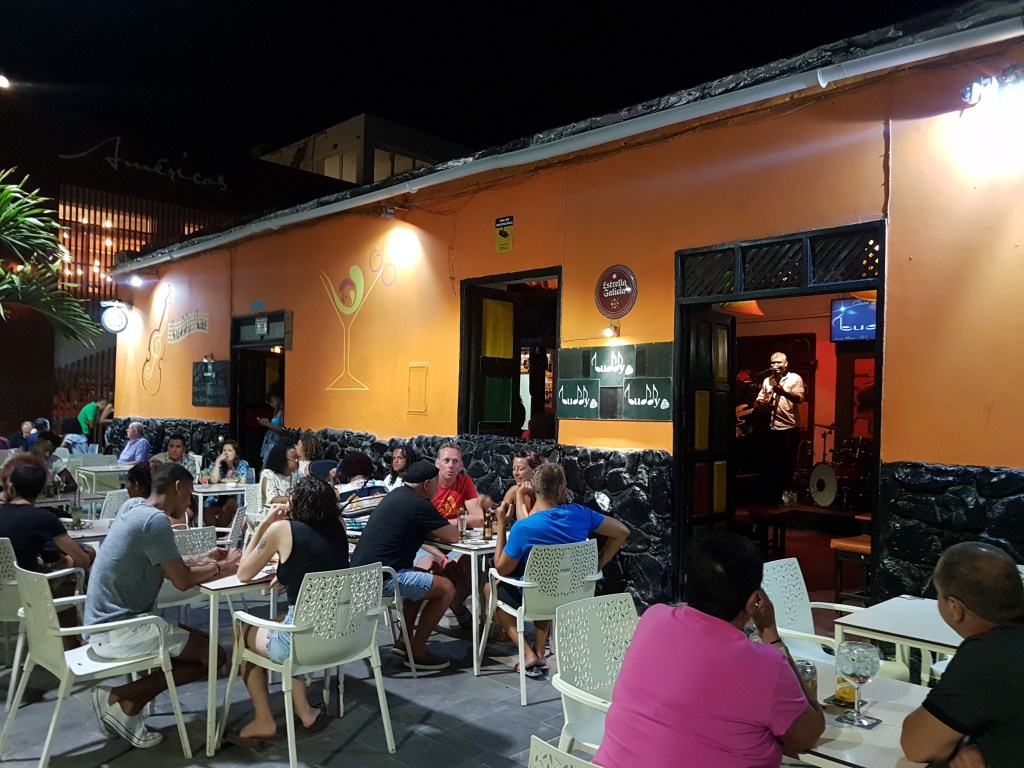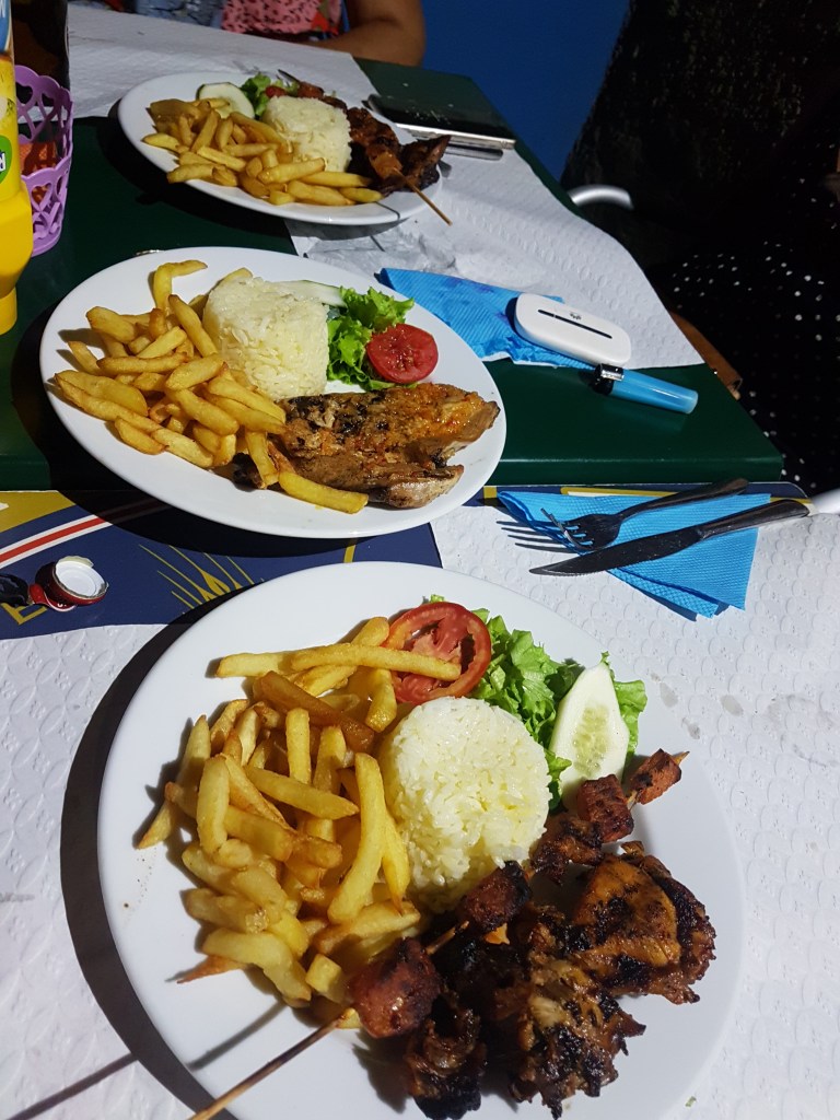 Churrasquinho local – desculpem-me, mas não anotei o nome! As espanholas que conheci no primeiro passeio me chamaram para jantar em um lugar de locais (não turístico). Elas já estavam há uma semana na ilha e conheceram vários locais. O local me remeteu ao Brasil! Era um churrasquinho de esquina que tocava música brasileira, inclusive É o Tchan! Ele fica na rua paralela (para trás) da rua 01 de junho na praia de Santa Maria.