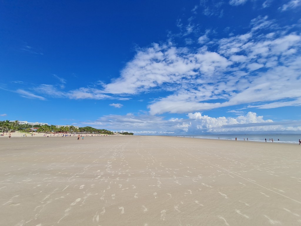 Na manhã seguinte, antes de pegar meu vôo de volta para Brasília, fui dar uma caminhada com o Marco pela praia Litorânea, que tem uma extensa faixa de areia e é bem bonita.