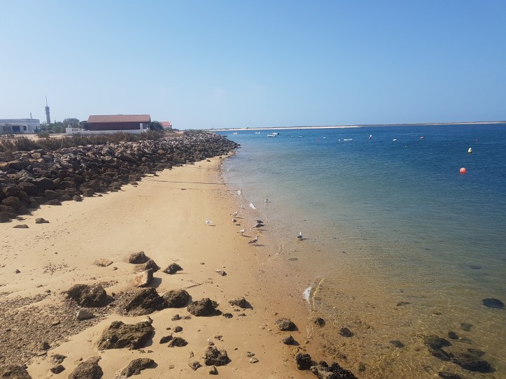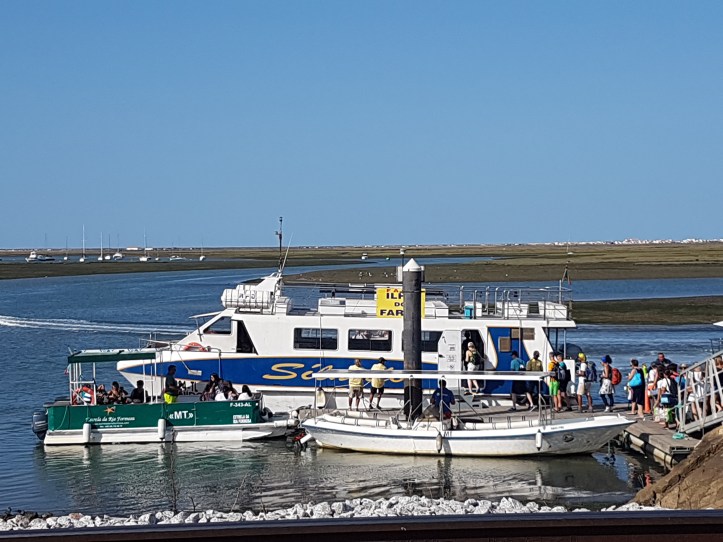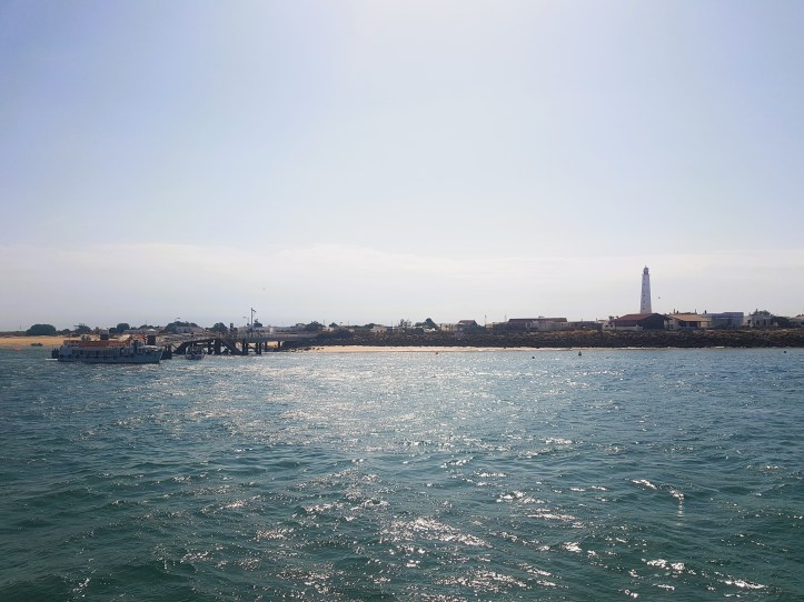 Nosso primeiro passeio em Faro foi para a Ilha do Farol. Para chegar lá, pegamos o barco (5 euros) no Cais das Portas do Mar. A viagem dura apenas 40 minutos. Mas é bom pesquisar antes, pois os horários de saída são bem poucos. Uma alternativa é ir de táxi boat, mas sai bem mais caro.