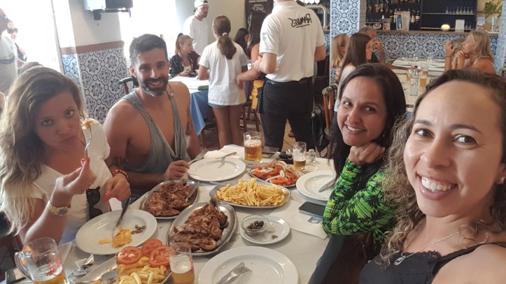 Como água do mar não alimenta, precisávamos parar para almoçar. E nossos “guias” locais nos levaram para um restaurante super tradicional (desde 1964) da região. Fomos para o Restaurante Ramires, na Vila da Guia, ainda em Albufeira, cerca de 15 minutos de carro desde a praia onde estávamos.