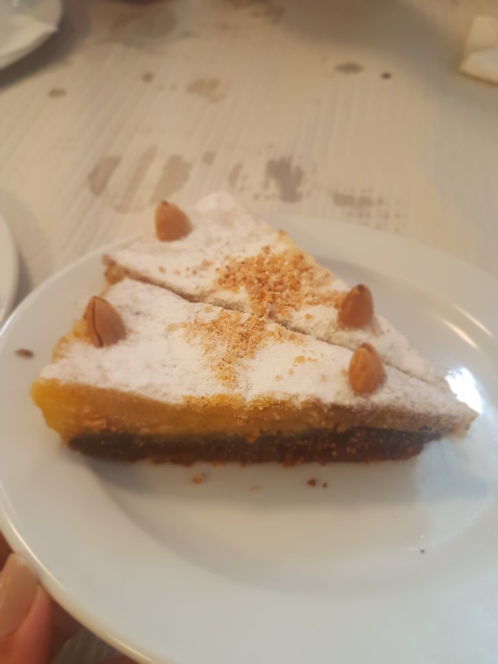 A especialidade da casa é o frango e foi isso que pedimos. Realmente, delicioso! Para sobremesa pedimos doces típicos: morgado (com abóbora, fios de ovos e amêndoa) e trilogia algarvia (amêndoa, figo e alfarroba). E ainda me fizeram provar estrela de figo (um docinho) com medonho, uma cachaça (como não bebo cachaça, era medonha mesmo para mim, kkk). Tudo isso saiu por 18 euros para cada.