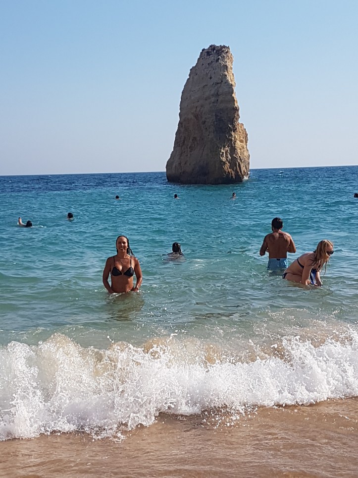 Seguimos para Lagos, onde fizemos a primeira parada na Praia de Dona Ana, que também tinha um lado mais movimentado e outro mais de boa.