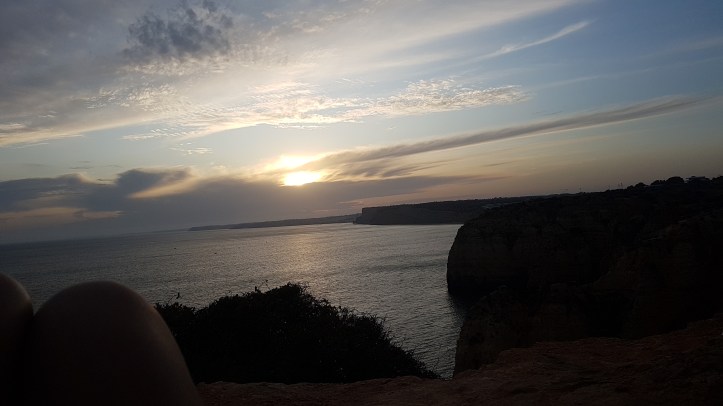 Nosso último destino foi a Ponta da Piedade, que fica no alto das falésias, para admirar o por do sol. As nuvens atrapalharam um pouco, mas, mesmo assim, foi lindo!