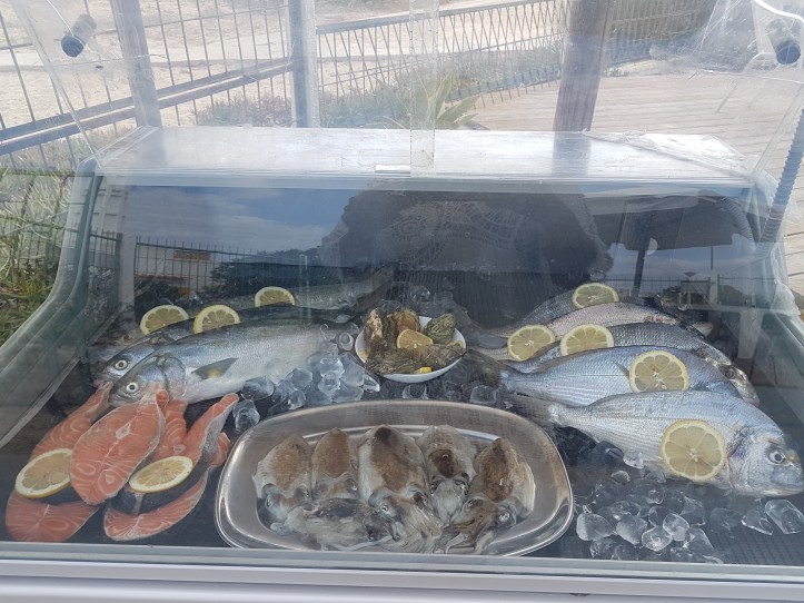 Passamos a manhã na praia e fomos comer um peixe delicioso no restaurante Mar de Santa Maria (23 euros para cada).