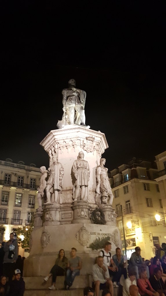 Um monumento que me chamou a atenção foi aquele em homenagem ao poeta português Luiz de Camões, não somente por sua imponência como também pelas pessoas que descansavam a seus pés. Ele fica na praça de mesmo nome na Baixa-Chiado.
