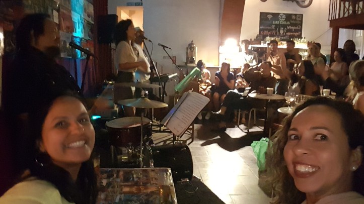 Como já estava de noite, nosso foco era a boemia mesmo, procurávamos um bar com música boa para sentarmos e tomarmos um drink. Circulamos pelas ruas movimentadas até que um lugar nos chamou a atenção: o Alface Hall. O bar estava lotado e entendemos o porquê: a banda era incrível. Música de alto nível! O cantor tinha uma voz maravilhosa!
