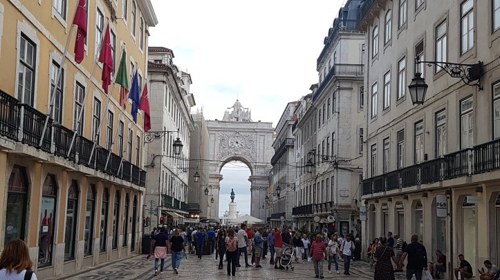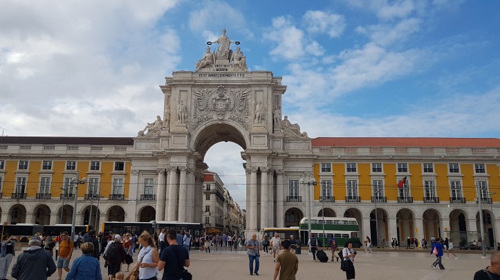 Seguimos caminhando, e observando as lojinhas, em sentido à Praça do Comércio, uma das principais (se não a principal) praça da cidade, passando pela Rua Augusta e o Arco do Triunfo. Antigamente, essa praça era a porta de entrada da cidade, já que os navios mercantes chegavam ali após navegarem pelo rio Tejo.
