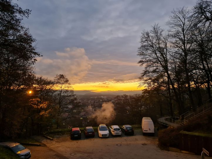 Chegamos ao funicular no timing perfeito, pois na subida já começamos a ver o sol baixando, o que deixou a vista da cidade do alto ainda mais linda! É possível subir caminhando também, nada muito difícil, mas achei maravilhosa a subida de funicular no por do sol.