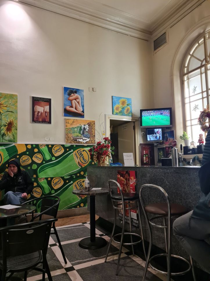 Na volta do passeio, demos nossa última caminhada pelas ruas do centro antigo, passando pelas lojinhas e pelos movimentados bares e restaurantes às margens do rio, e fomos lanchar em uma lanchonete sérvia indicada pelo Dejan (nosso anfitrião). Coincidentemente, mais tarde, naquele dia o Brasil estrearia na Copa do Mundo de Futebol do Qatar contra os sérvios. Enquanto assistíamos ao jogo de Portugal, comemos um sanduichão com um hamburguer recheado com queijo, saladas, molhos diferentes e pão tipo sírio. Estava bem gostoso e era gigante!