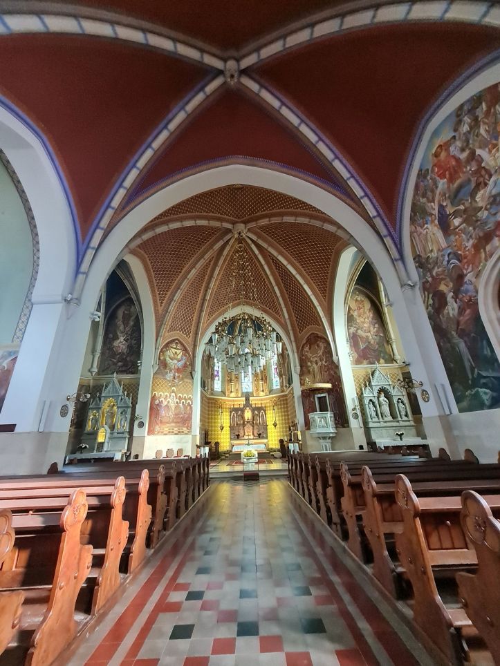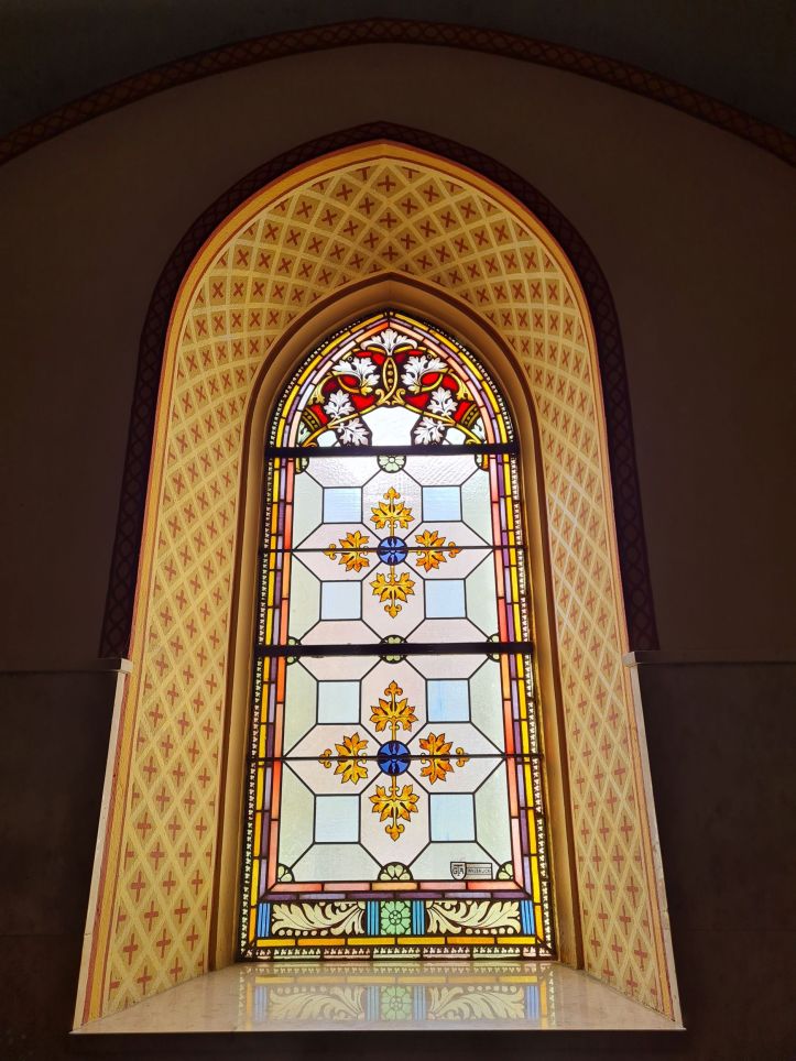 Na descida (pela mesma trilha), paramos na Igreja St Martin, bem bonita por dentro e por fora. Ela é repleta de vitrais coloridos.