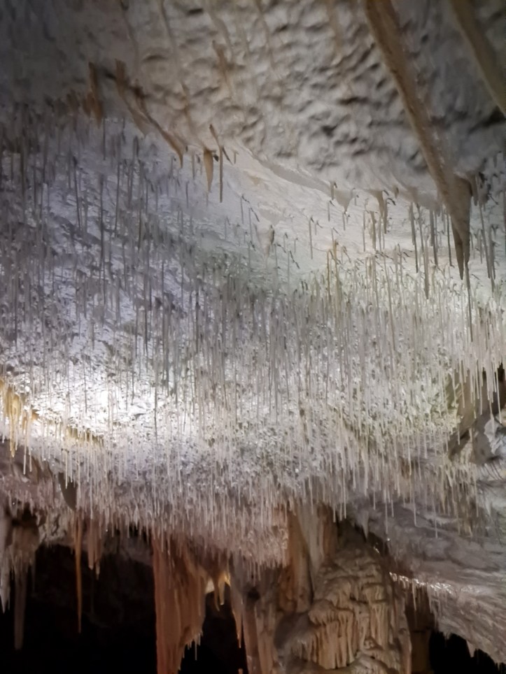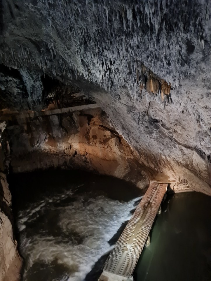 A caminhada leva pouco mais de 1h, sendo que, no final, passamos por uma galeria gigante onde tem uma TV que mostra, ao vivo, os dragõezinhos que ficam dentro das poças de água da caverna. Depois eles nos mostram esses bichinhos em um aquário. Eles são anfíbios, tipo uma salamandra, nadam com o rabo, apesar de possuírem braços, e vivem até 100 anos.