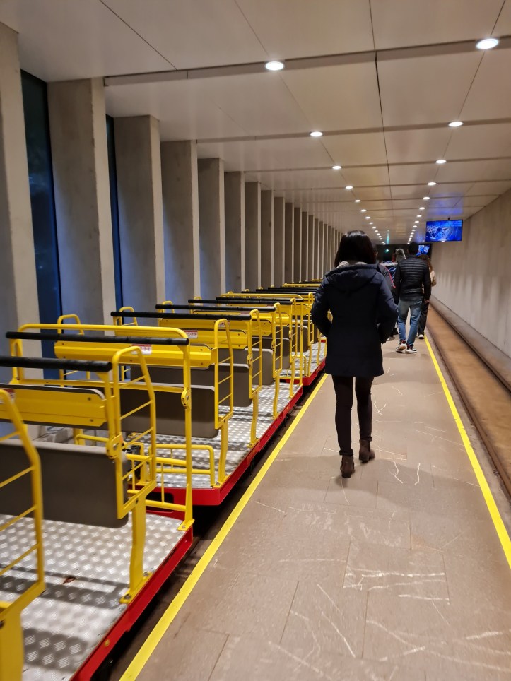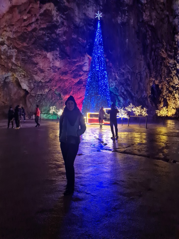 Antes de pegarmos o trem que leva de volta à entrada da caverna, passamos por uma galeria onde eles organizam concertos, aproveitando a ótima acústica da caverna. Estava com decoração de Natal.