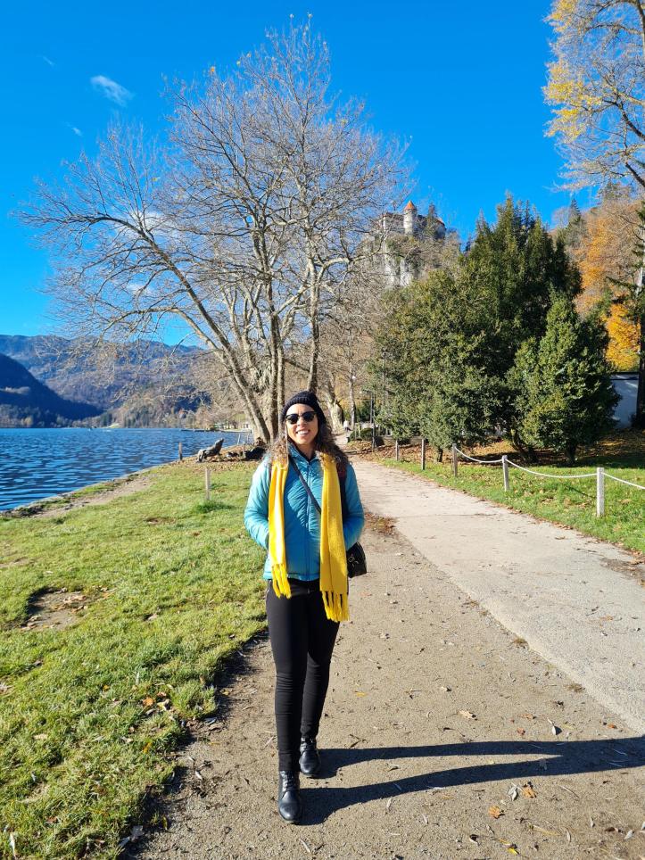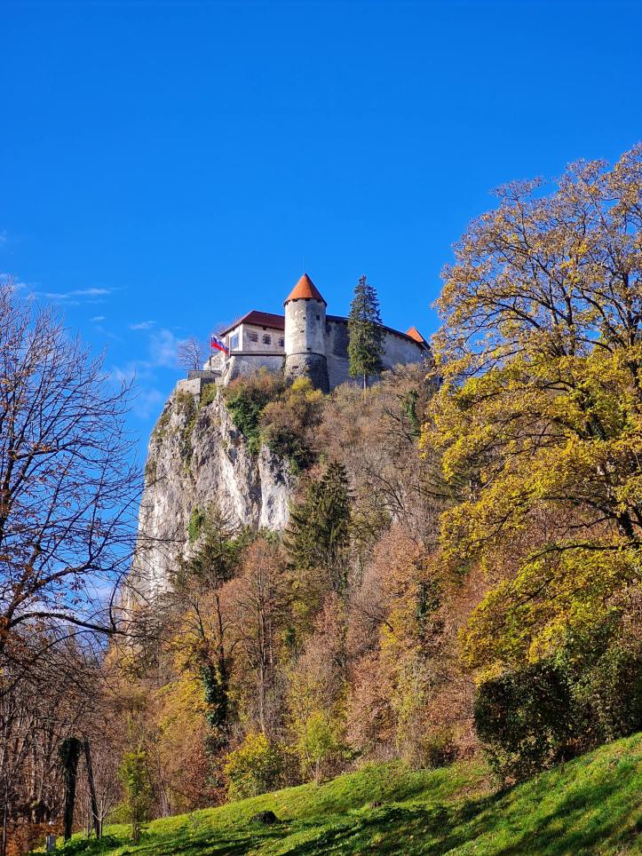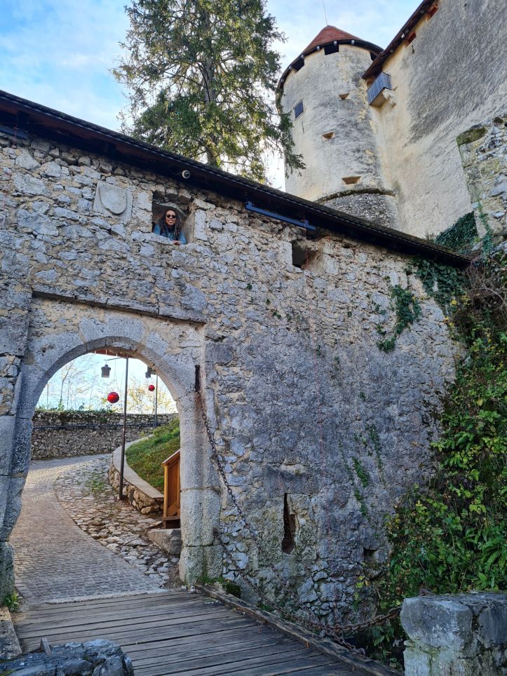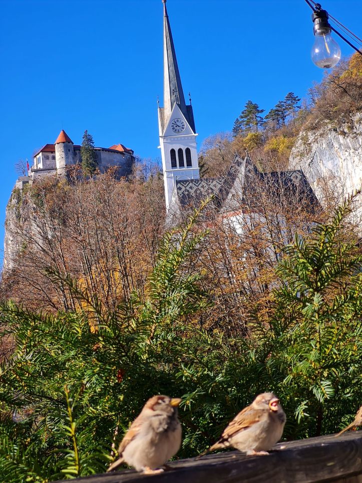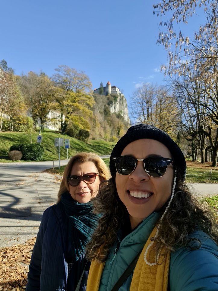 Chegamos à rodoviária de Bled, que é minúscula e fica bem pertinho do lago. Ali perto, no Caffe Peglez’n, paramos para tomar chocolate quente e, em seguida, descemos para ver o lago e subimos pela trilha/escada até o Castelo de Bled.