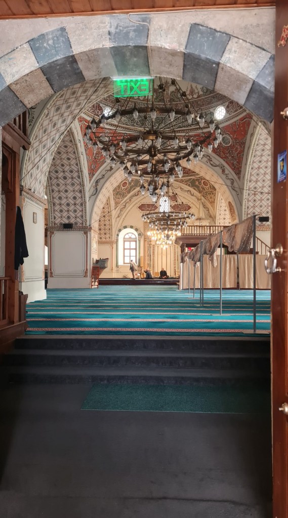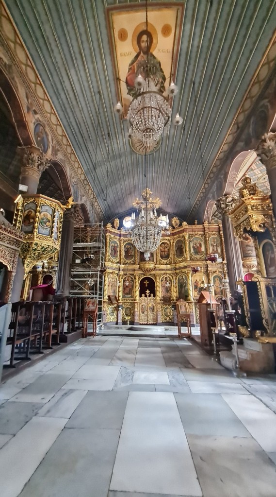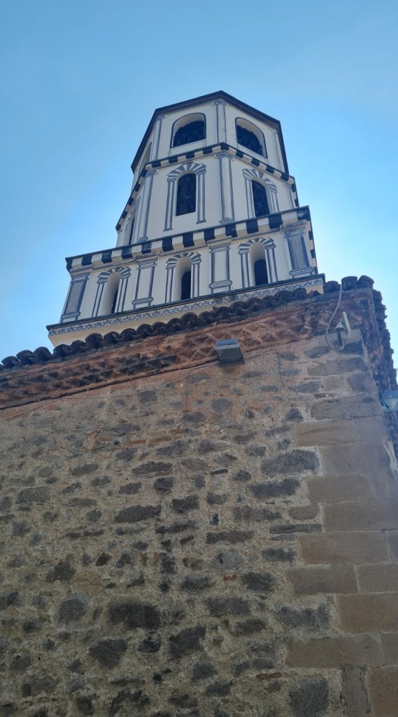 Ainda na Cidade Velha, visitamos a Igreja Sveta Bogoroditsa (Igreja da Santa Mãe de Deus), um dos templos ortodoxos mais importantes de Plovdiv. Construída originalmente no século XIV e reconstruída em 1844 durante o período do Renascimento Nacional Búlgaro, ela simboliza a resistência e a fé dos habitantes da cidade em tempos de dominação otomana. Por muitos anos, igrejas como essas tiveram que ficar escondidas. A fachada é sóbria, mas o interior impressiona com ícones ricamente decorados e um magnífico iconóstase (parede ou tela ornamentada com ícones religiosos) esculpido em madeira dourada. É um marco histórico que testemunha a luta pela preservação da identidade cultural búlgara.