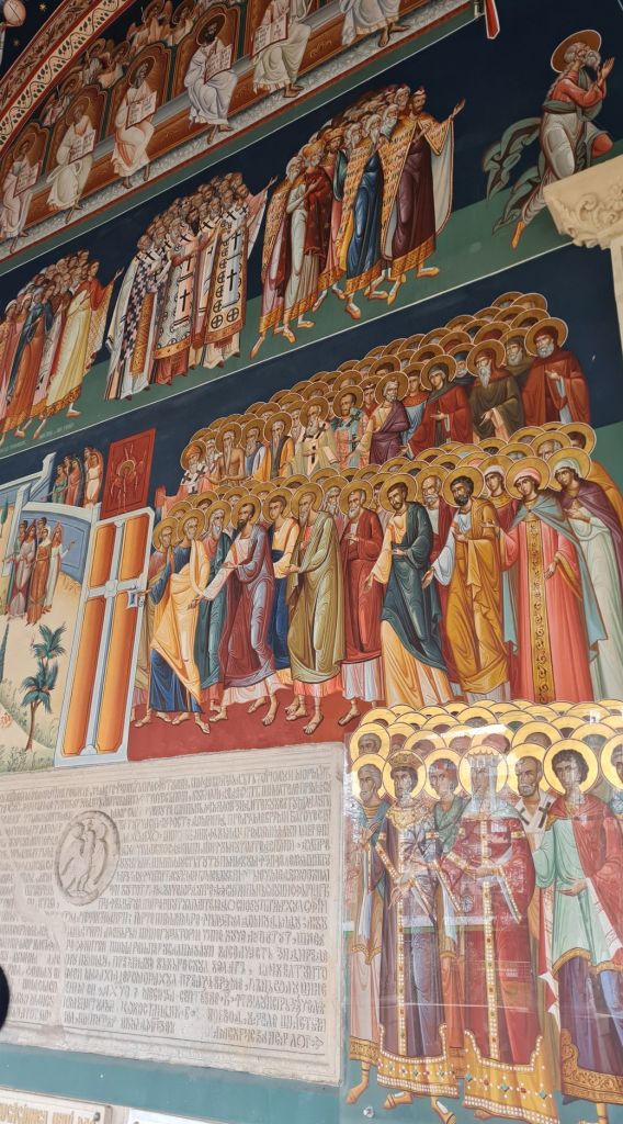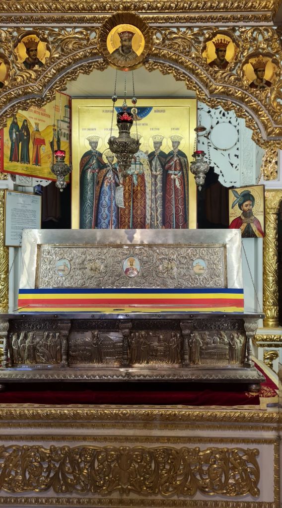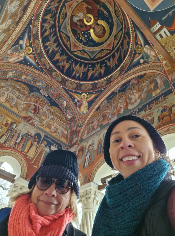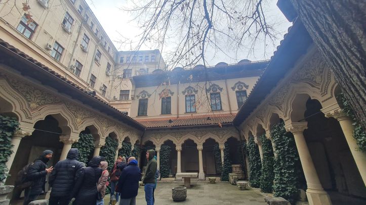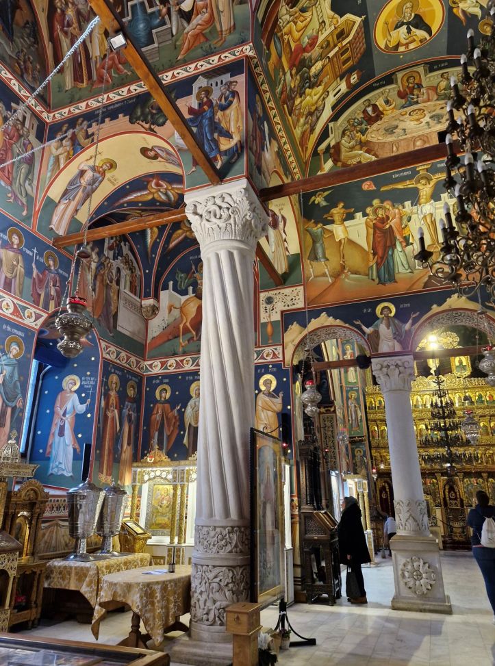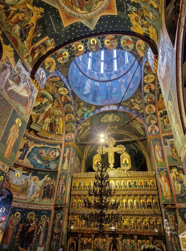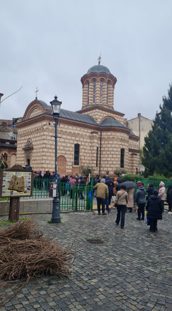 A última parada do nosso tour foi na Nova Igreja de São Jorge (Biserica Sfântul Gheorghe Nou), uma das igrejas ortodoxas mais importantes de Bucareste. Construída no início do século XVIII sob o reinado do príncipe Constantin Brâncoveanu (Constantino), que inclusive está sepultado em seu interior, ela foi reconstruída diversas vezes. O hall de entrada é decorado por murais com imagens do céu, do inferno e da história de Constantino. O templo é repleto de detalhes ornamentais que misturam influências bizantinas e locais, com paredes e tetos completamente cobertos por pinturas coloridas.