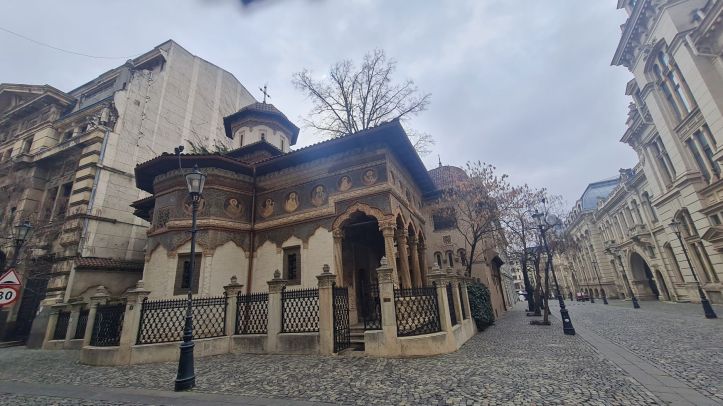 A parada seguinte foi na Igreja Stravopoleos (Biserica Stavropoleos), construída em 1724 com influências bizantinas, com uma fachada ricamente ornamentada e um interior de grande beleza. Apesar de pequena, a igreja impressiona pelos afrescos, além de abrigar uma biblioteca especializada em teologia e música bizantina e um importante mosteiro, fundado junto com a igreja e que ainda funciona, mantendo viva a tradição ortodoxa.