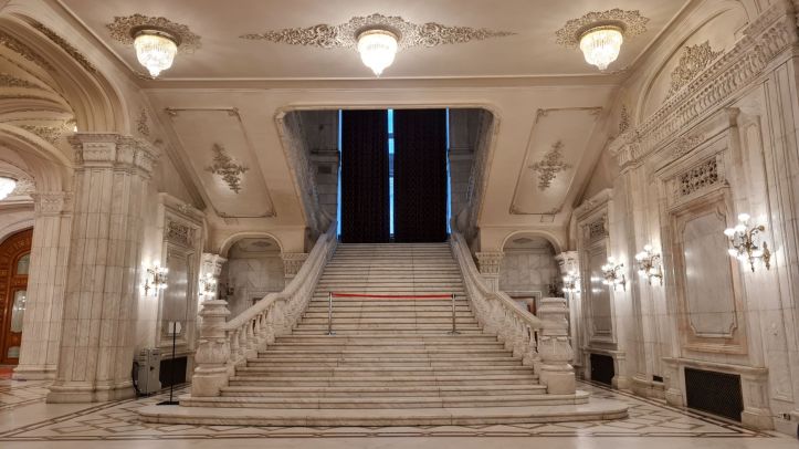 Atualmente, além de abrigar o Parlamento e outras instituições, o palácio está aberto ao público por meio de visitas guiadas, que permitem explorar parte de seus interiores luxuosos e conhecer a história por trás de sua construção. As visitas acontecem a cada 30 minutos, custam 120 RON cada e podem ser em vários idiomas, mas não tem em português, por isso optamos pelo inglês.