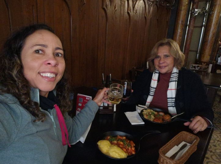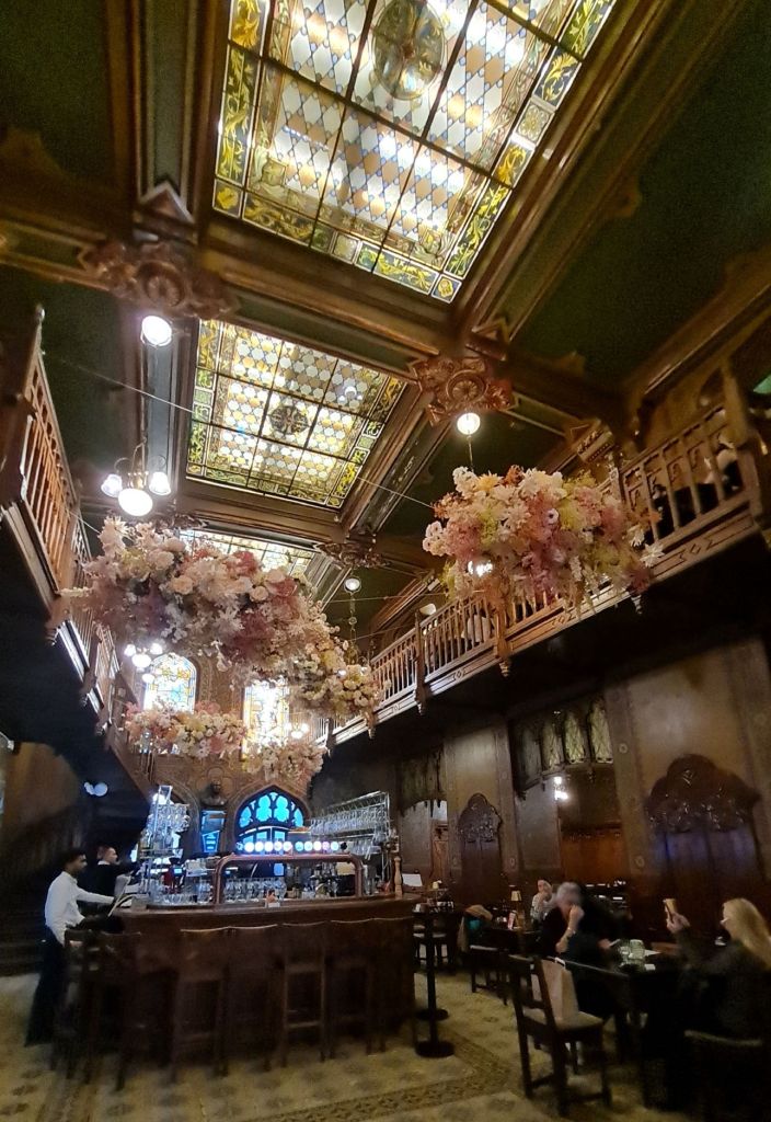 Restaurante Caru’ cu bere – localizado na Cidade Velha de Bucareste, é um dos restaurantes mais tradicionais e icônicos da Romênia. Fundado em 1879, o espaço combina gastronomia típica romena com uma arquitetura em estilo neogótico e interiores ricamente decorados com vitrais, afrescos e madeira entalhada. Também funciona como cervejaria. É uma ótima oportunidade para provar os pratos típicos e com um ótimo custo-benefício, já que tem a opção de menu do dia (pacote promocional com entrada, prato principal e sobremesa). Cada uma pagou 35 RON nesse pacote.
