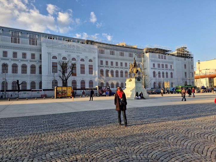 A última atração turística que visitamos foi a Praça da Universidade (Piața Universității), um dos pontos centrais e mais movimentados da cidade, tanto pela sua localização estratégica quanto pelo valor histórico e cultural. Rodeada por edifícios emblemáticos, como a Universidade de Bucareste e o Teatro Nacional, a praça é também conhecida pelos monumentos dedicados a figuras importantes da história romena. Ela ganhou destaque como palco de manifestações políticas e sociais, especialmente durante a Revolução de 1989, tornando-se símbolo da luta pela liberdade e democracia.